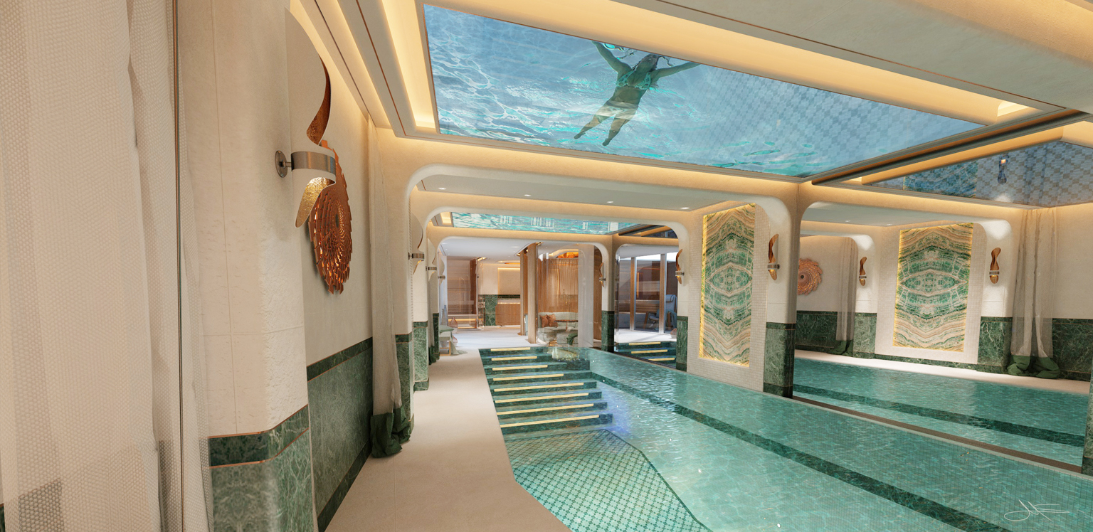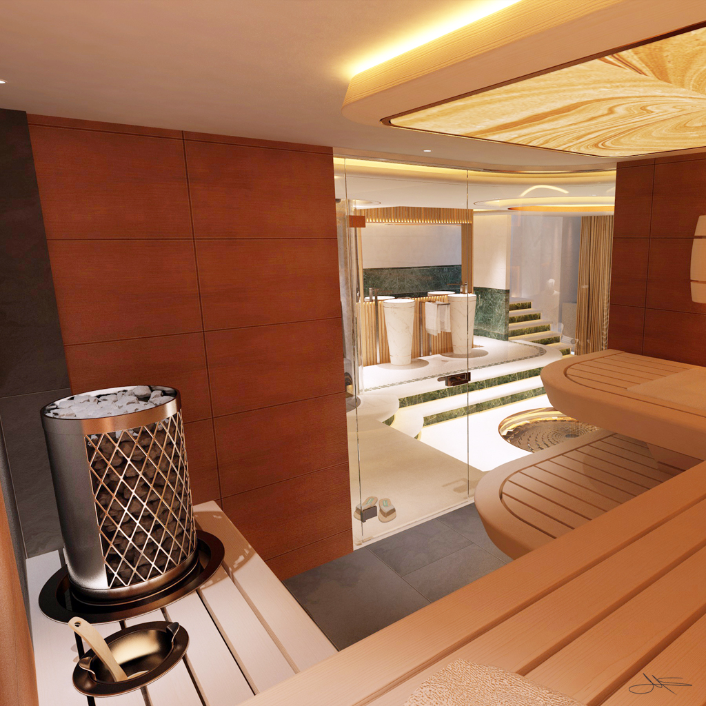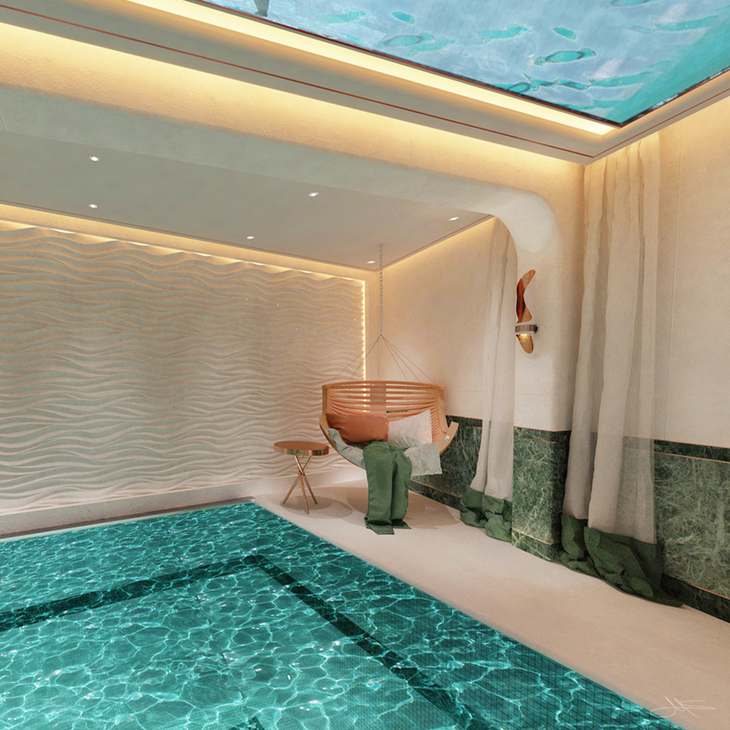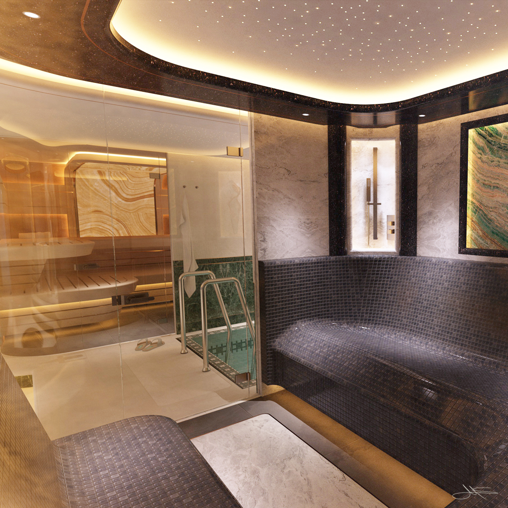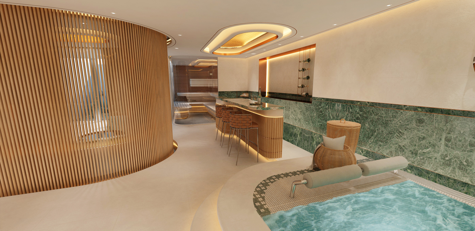 The client wanted a concept that included a possible conversion including the extension of his basement rooms by undermining his outdoor pool and the transformation into a wellness oasis.