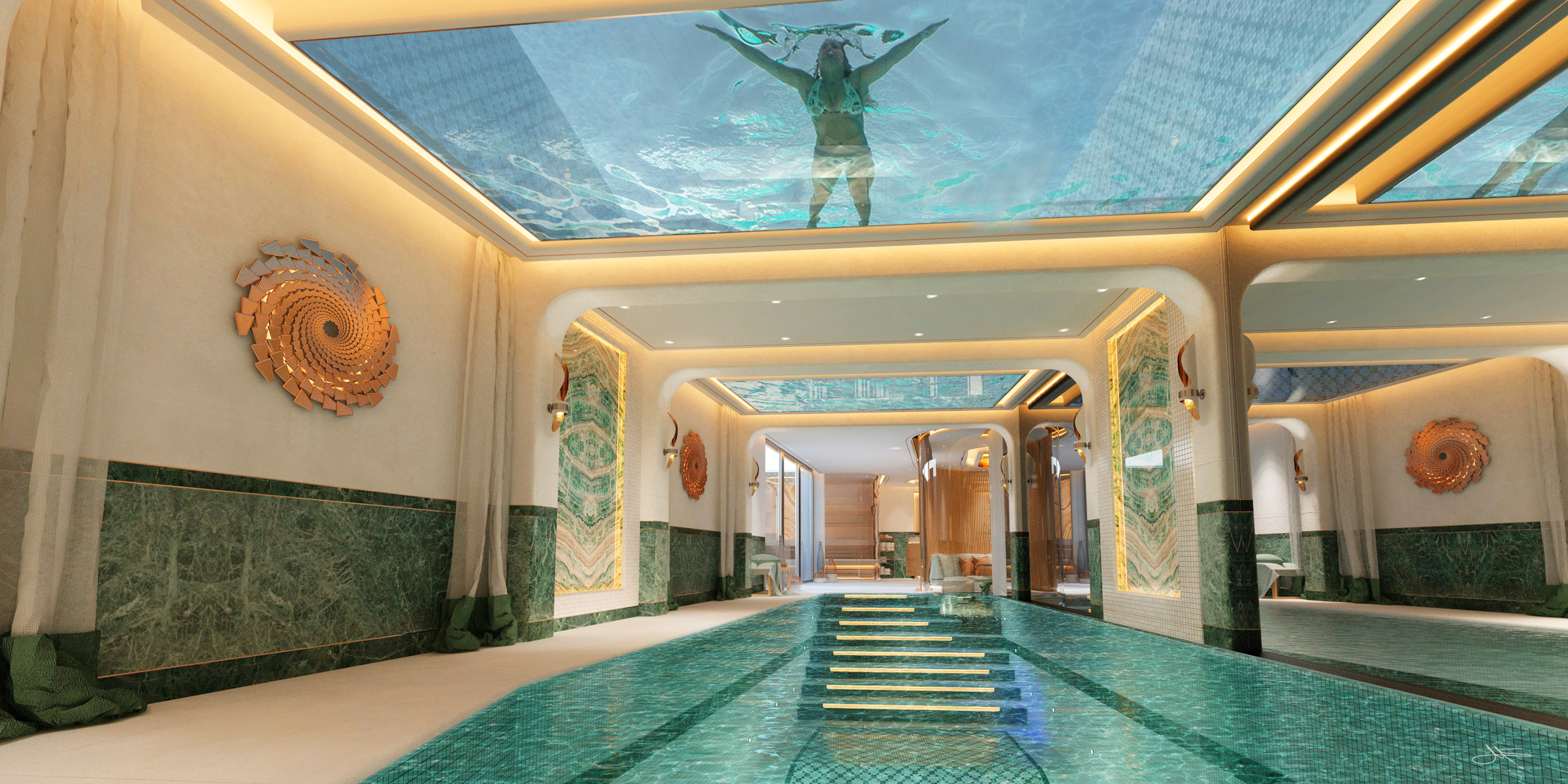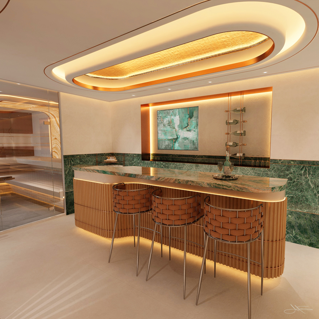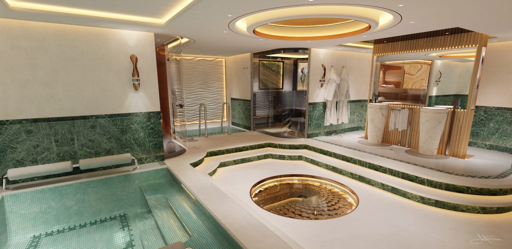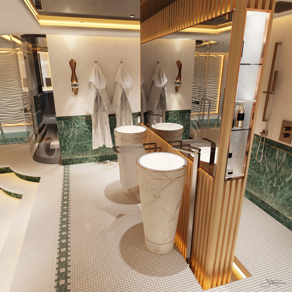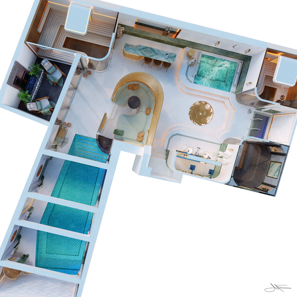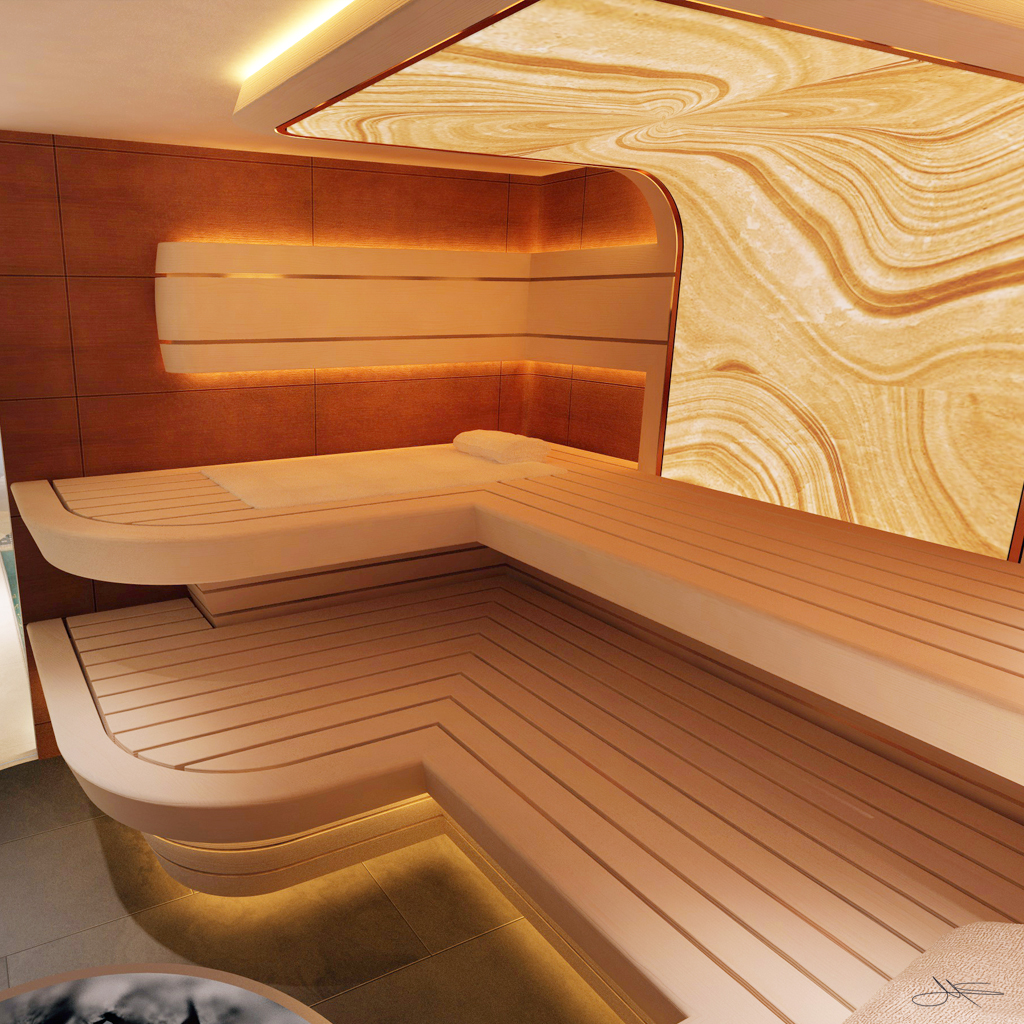 The client wanted a concept that included a possible conversion including the extension of his basement rooms by undermining his outdoor pool and the transformation into a wellness oasis.